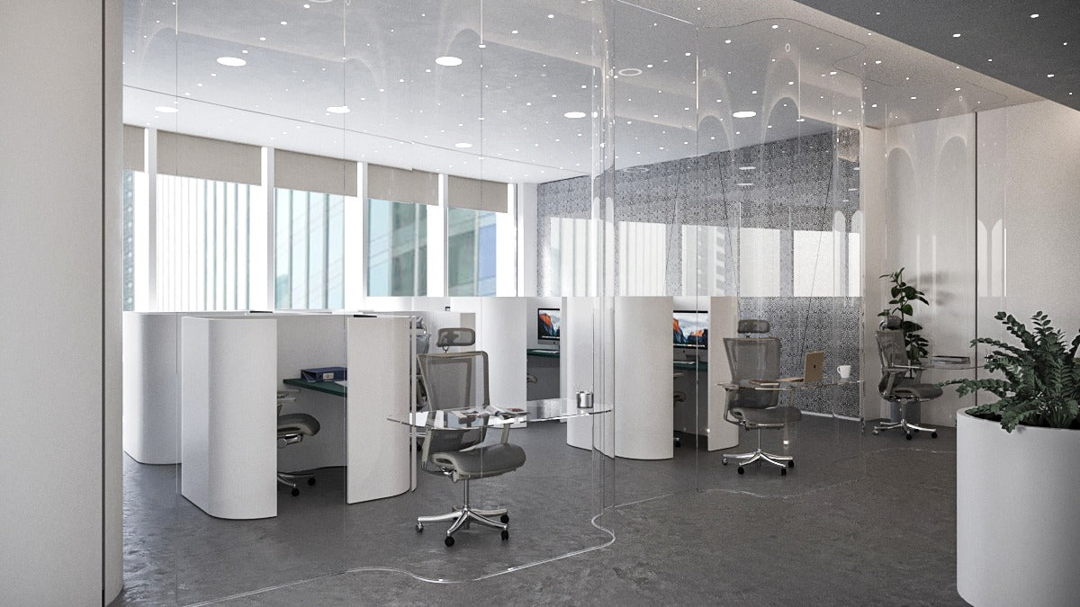 Corporate headquarters, co-working spaces, executive suites. Executive fit-out, custom glass partitions, meeting room glazing, reception and common areas.